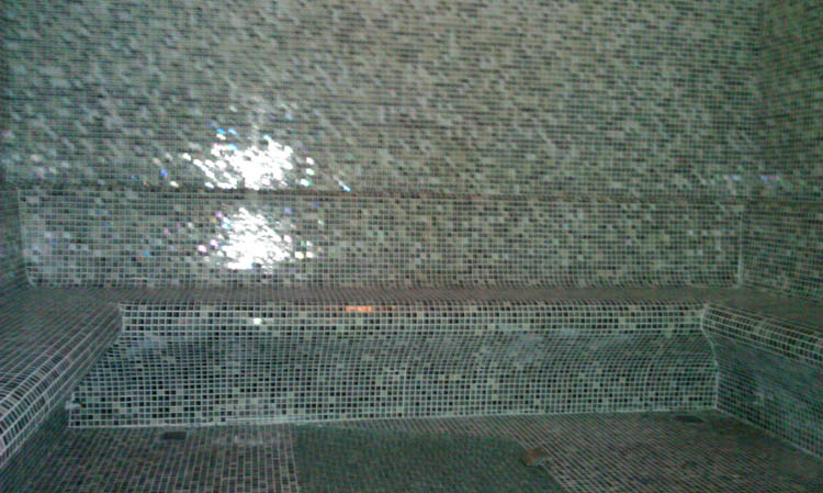 墻面和地面采用大理石、馬賽克或者普通瓷磚鋪設