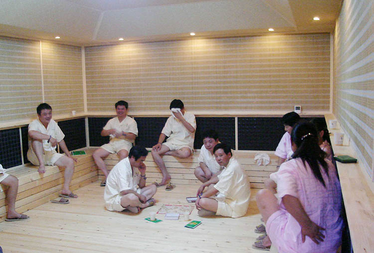 韓式汗蒸房發展至今,種類繁多。韓式汗蒸幕是將黃土和各種寶石類石頭加熱,讓浴者悠閑的或躺或坐在汗蒸幕內,利用純天然寶石材料放 射出的對人體有益的元素,使身體大量出汗加速血液循環,使得沉積在體內的雜質或廢物,隨著汗水排泄出來,以達到新陳代謝和養顏美容的效果。